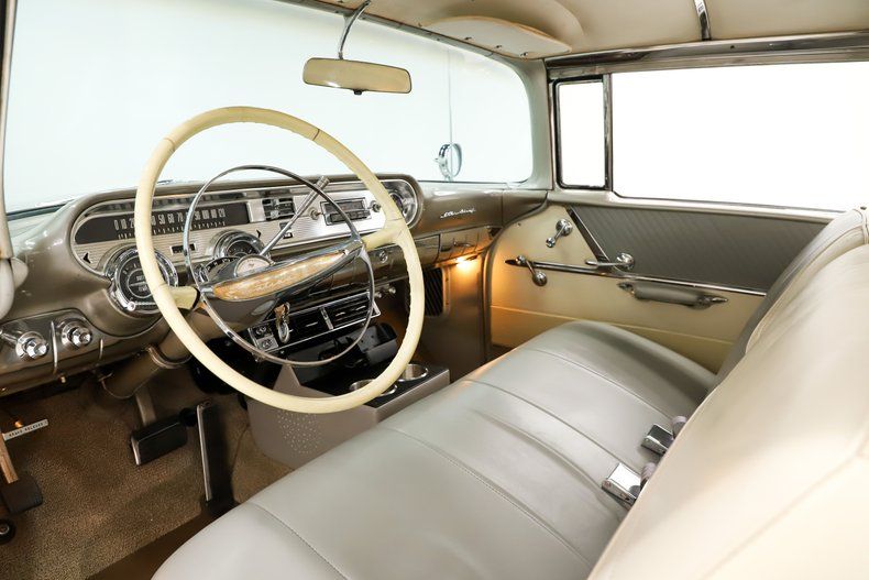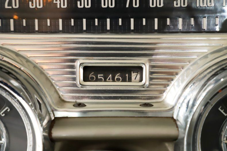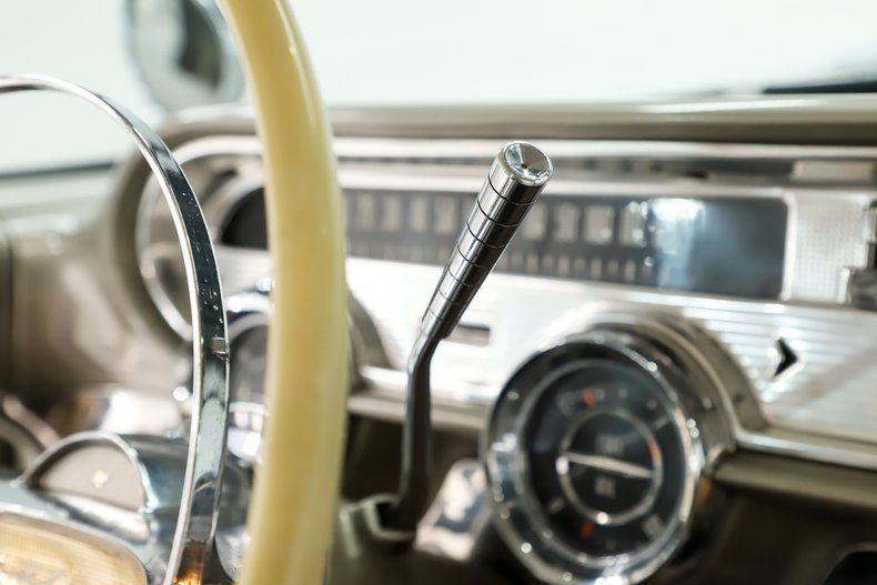 INTERIOR: It's impressive inside too, no shortage of chrome! The seat was reupholstered in glove soft leather using the correct patterns. New carpet. Very good original door panels. Original headliner has a seam that came apart. Looking at the dash it is very clean original condition. The original radio has a stereo conversion internally, the clock and interior lights work. The air conditioning was neatly installed under the dash. Seat belts were added front and back. It also has a removable console in front and armrest in back.