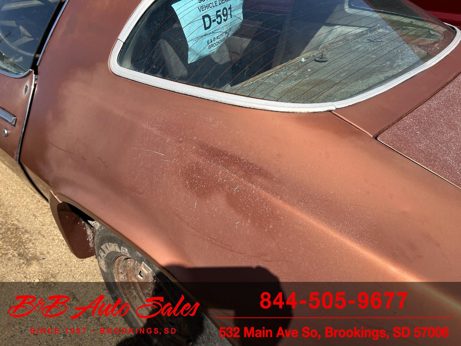 EXTERIOR- The body is solid with some rust. Front floor pans have some rust. Right quarter has some damage and rust. Trunk appears to be ok with some surface rust. See the video for an up close inspection. Text Dirk at 605-695-7391 for running and driving video's