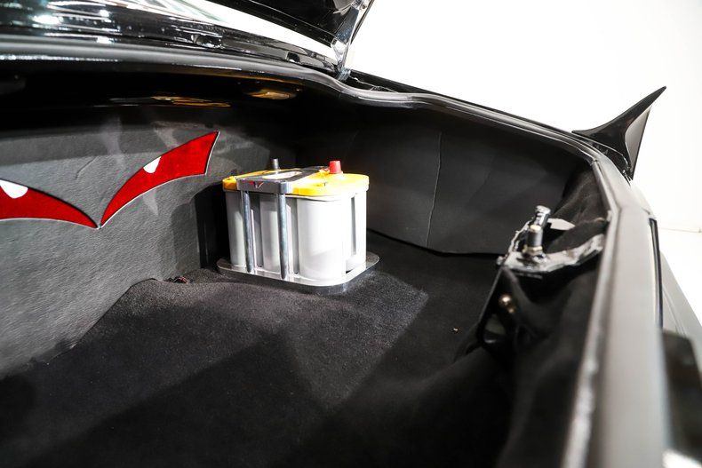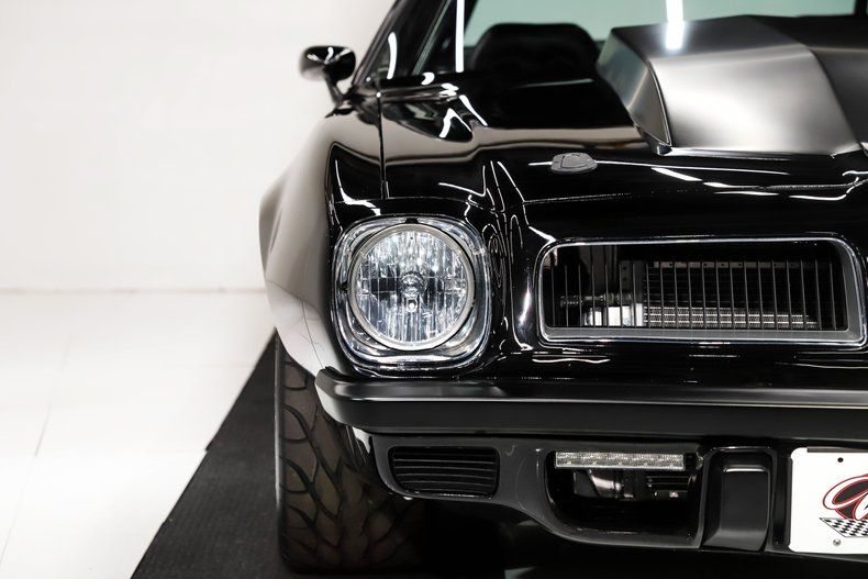 EXTERIOR: Show quality paint and body work! It's literally like looking into a black mirror. The PPG paint has been expertly applied and polished to a highly reflective finish. Down the side of the body is 100% straight as an arrow and the gaps are consistent all the way around. The rain gutters, emblems and door handles have been shaved/smoothed. The doors open with electronic poppers via remote and close like a new car. All the glass is brand new with new weather stripping too. It has a rear spoiler and a fiberglass cowl induction hood that has Aero catch hood pins. It has LED front running lights and a Detroit Speed bright headlight kit. The dual sport mirrors are electronically controlled. The wheels have been upgraded to Billet Specialties five spoke chrome mags that are wrapped in BF Goodrich G-Force T/A tires. They are monstrous size 335/30ZR18 in back and size 275/35 ZR18s up front.